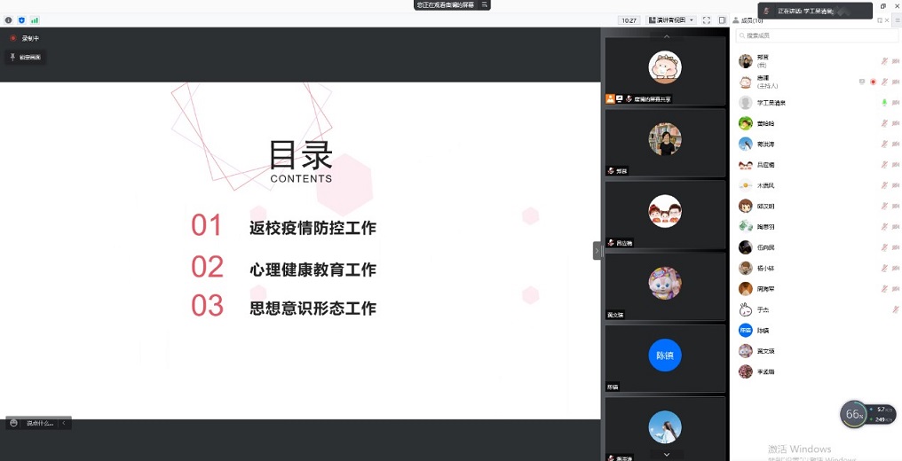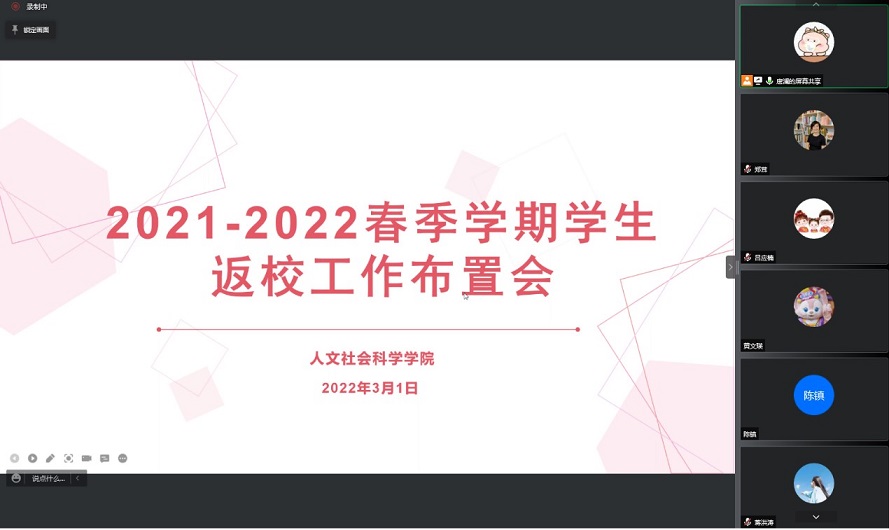 为切实做好2022年春季学期学生开学返校工作,保障学生顺利、安全返校,3月1日下午,调教漫画 于线上召开2022年春季学期学生返校工作布置会。学院党委副书记郑茸、团委书记黄文瑛、学办主任朱平华、辅导员唐澜、吴清泉及全体班主任参加会议。