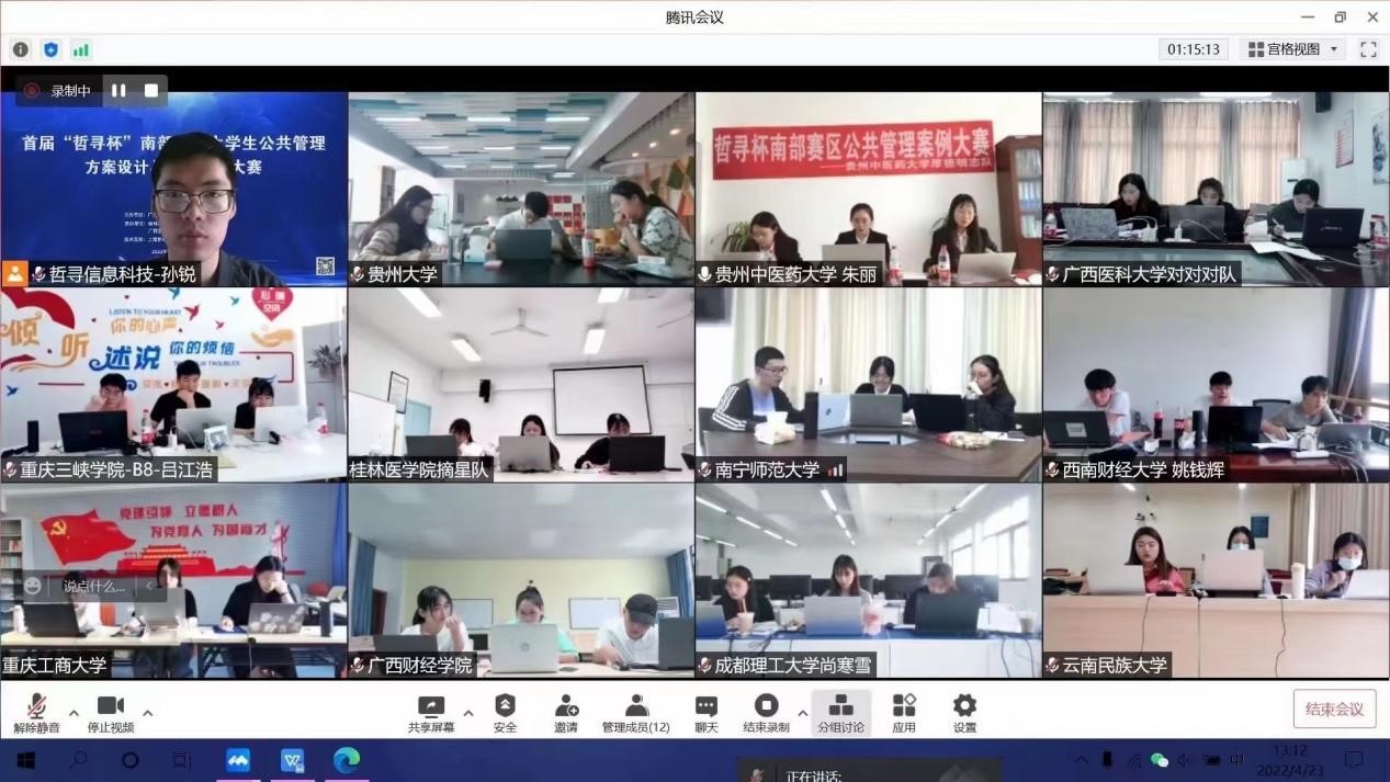 来自南部赛区(广东省、广西壮族自治区、海南省、四川省、贵州省、云南省、重庆市)的中山大学、华南理工大学、广西大学、桂林医学院、调教漫画 、西南财经大学、贵州大学、云南大学、西南大学等62所高校的64支队伍近300多名学生参加了本次大赛。由调教漫画 调教漫画 2018级公共事业管理(社会医疗保障中外合作办学方向)51班周玲如、2019级52班刘倩茹、晗日同学组成的学生团队在本届“哲寻杯”南部地区大学生公共管理方案设计与决策对抗大赛中,经过公共管理方案设计、决策演练沙盘对抗、知识竞赛等竞赛单元,最终荣获南部地区一等奖。