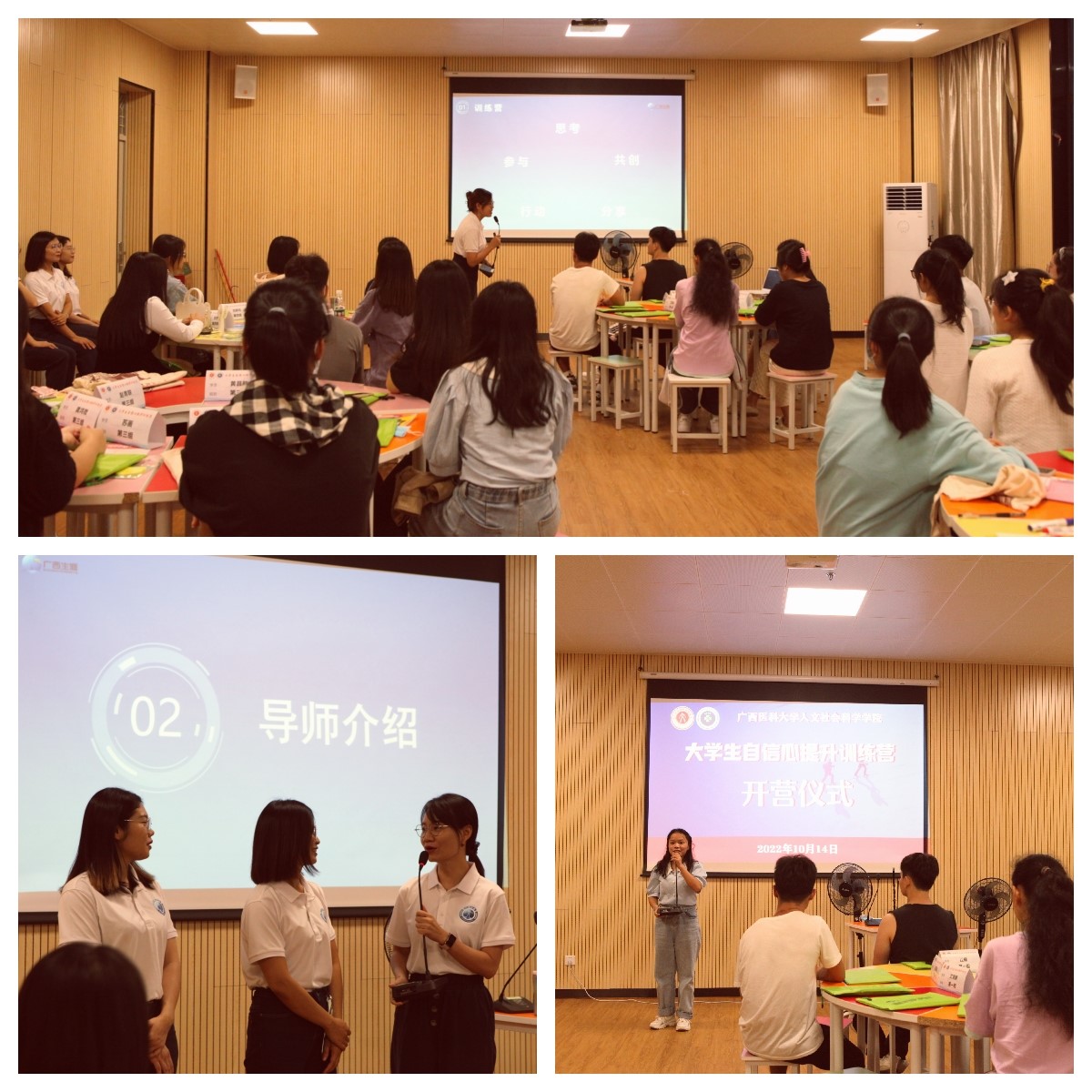 2022年10月14日,调教漫画 大学生自信心提升训练营正式开营。学院党委副书记郑茸老师,辅导员黄文瑛老师、唐澜老师、吴清泉老师,广西生涯俱乐部巫妮燕、简敏华、钟春玲、马昭敏、徐芳5名校外导师,学院李琳珠、陈昱臻、甘露、翟跃、蒋映月5位朋辈助教和37名营员参加开营仪式。