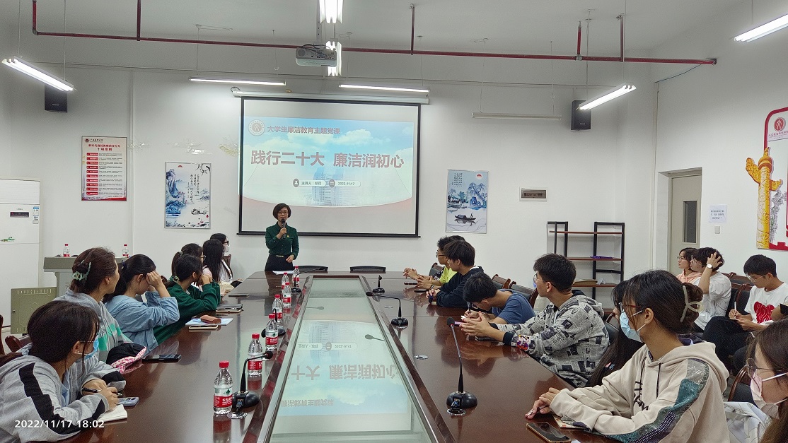为切实加强学生干部廉洁教育,引导学生干部坚定理想信念、提升廉洁素养,2022年11月17日晚,调教漫画 党委副书记、纪委书记郑茸在武鸣校区文信楼606会议室为学生干部代表讲“践行二十大 廉洁润初心”专题党课,并开展优良学风建设调研座谈会。