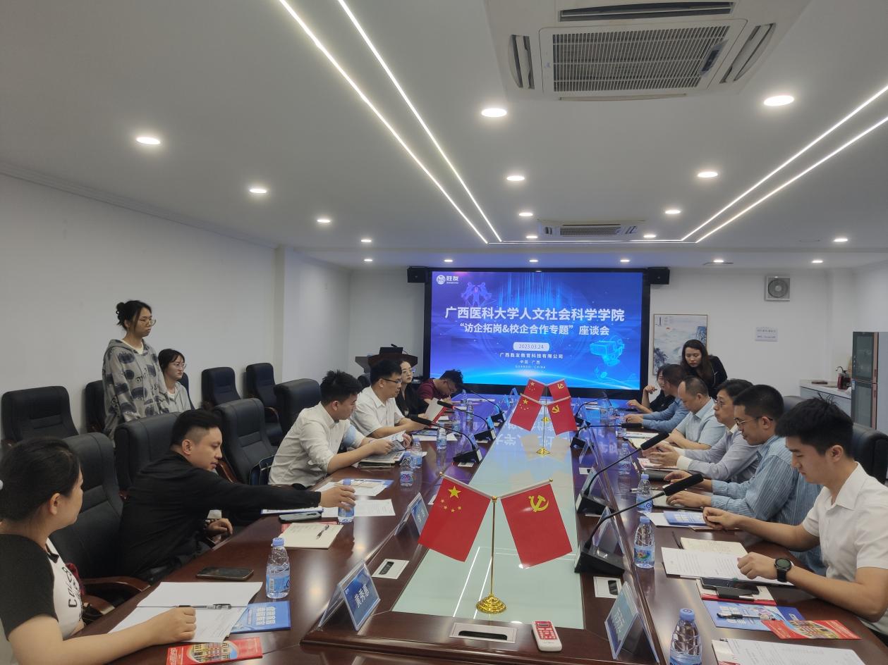 为进一步贯彻党中央、国务院关于高校毕业生就业工作的决策部署,落实学校“访企拓岗”的工作要求。2023年3月24日上午,调教漫画 党委书记唐忠、辅导员唐澜带领调教漫画 毕业生代表前往广西胜友教育科技有限公司走访调研,并与胜友教育科技、建信住房服务、北投信创科技集团、耀象教育科技、祥润文化等5家单位的领导和企业代表开展座谈交流。