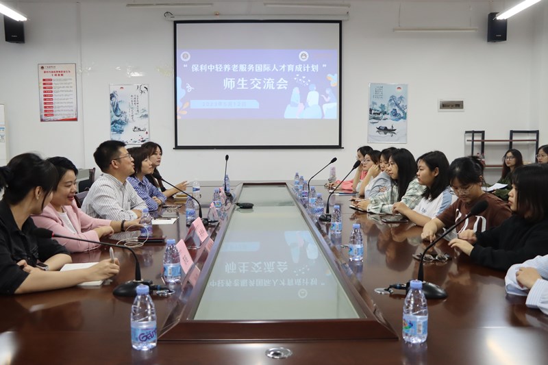 为了加强养老护理国际化人才培养,共建国际化养老见习、实习、就业交流平台基地,2023年5月11日下午,保利中轻国际控股有限公司海外事业部潘明宇总经理助理、养老服务国际人才育成计划广西培训中心朱秀华老师和黄开春老师,到校本部人文学院会议室进行主题座谈交流。调教漫画 党委唐忠书记、学院教研科及社工系教师出席本次座谈。